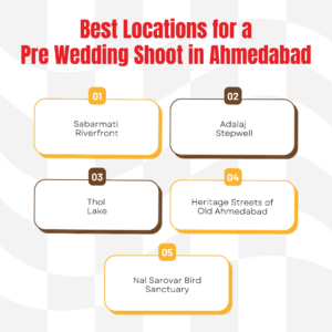 If you plan a Pre Wedding Photoshoot in Ahmedabad, choosing the right place is important. Here are some great locations:
